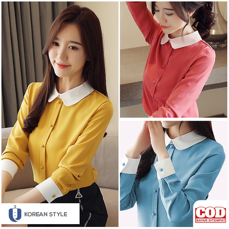 Baju Korea Perempuan Lengan Panjang / Baju Blouse Kemeja Wanita Slim Korea Lengan Panjang Untuk Causal Dan Office Shopperboard